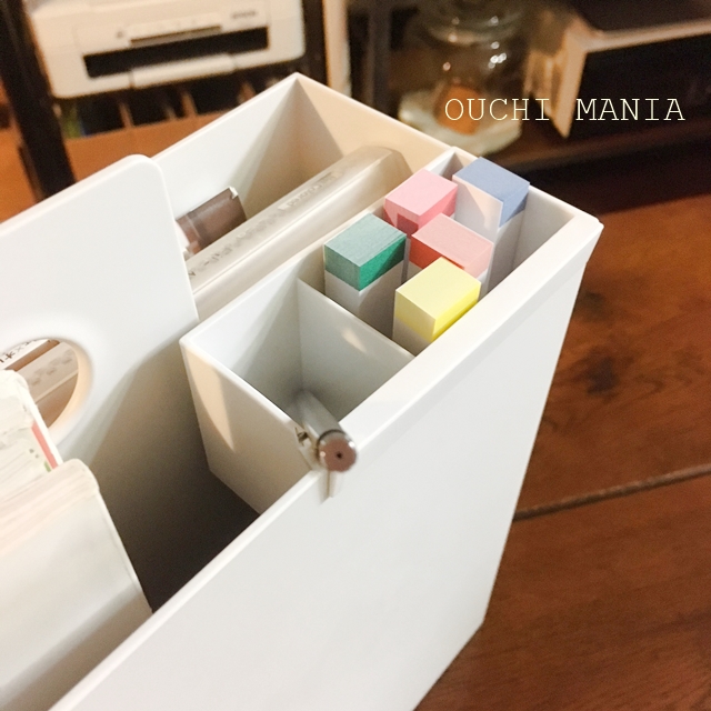 また持ち手付きファイルボックスに、小物ポケットを付けて使っています。