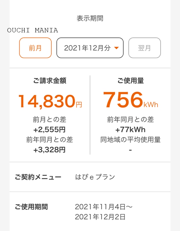先日その期間の、電気代明細が届いたのですが