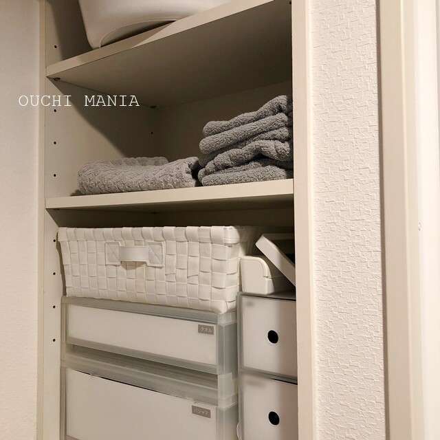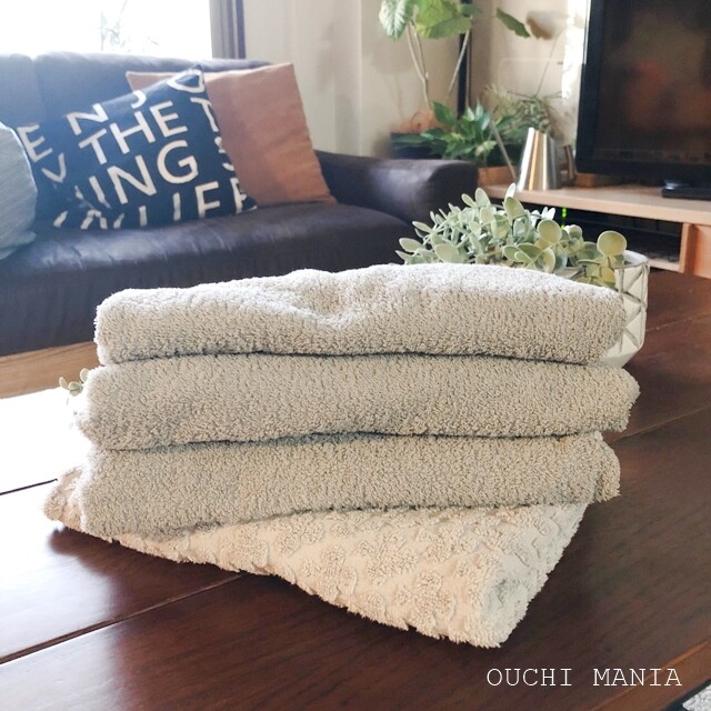 我が家の洗面所は収納スペースがあまり無いので、かさばるバスタオルを使わず、現在はスリムバスタオルとミニバスタオルを使っています。