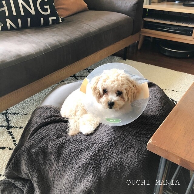 しばらくエリザベスカラーをつけて過ごしていた、愛犬のポポ
