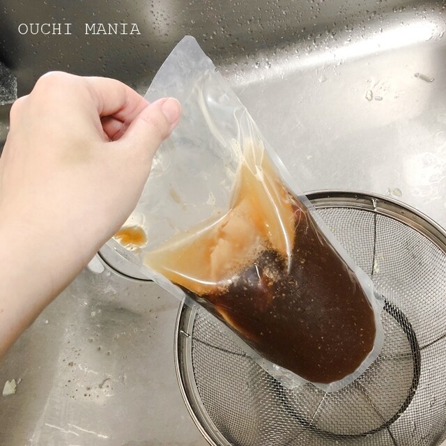 袋に穴が空いていたのか、少しずつスープが流れ出て、お湯が茶色くなっていました(´;ω;`)