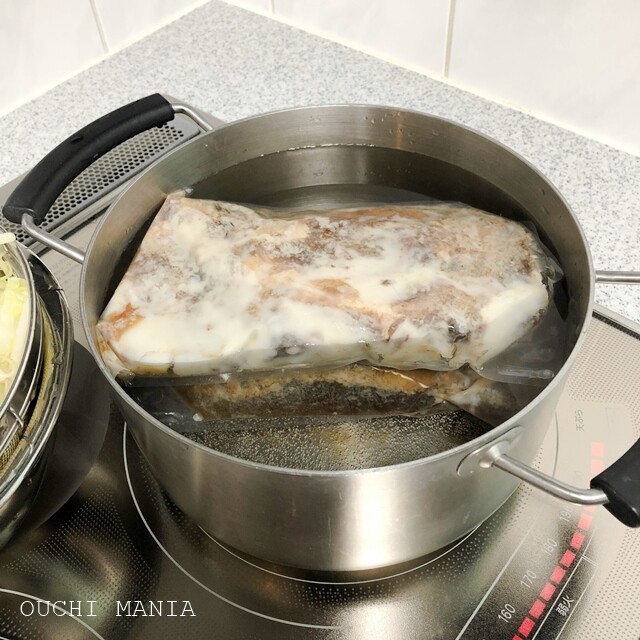 まずチャーシュー入りスープをお湯で温め