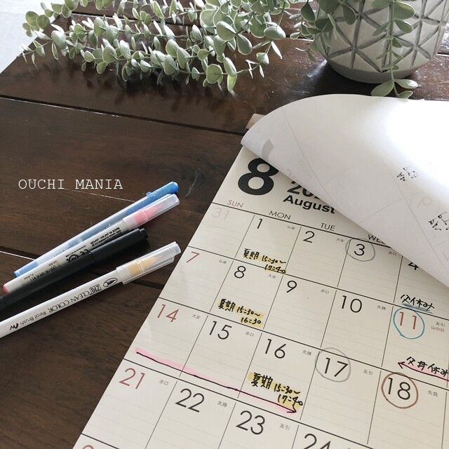 色ペンを使いながら、パッと見て日々の予定がわかるように、カレンダーに書き込む事に。