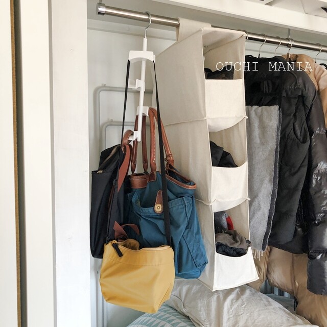 バッグを掛ける部分が360度回転するので、複数のカバンを重ならず収納できる優れ物!